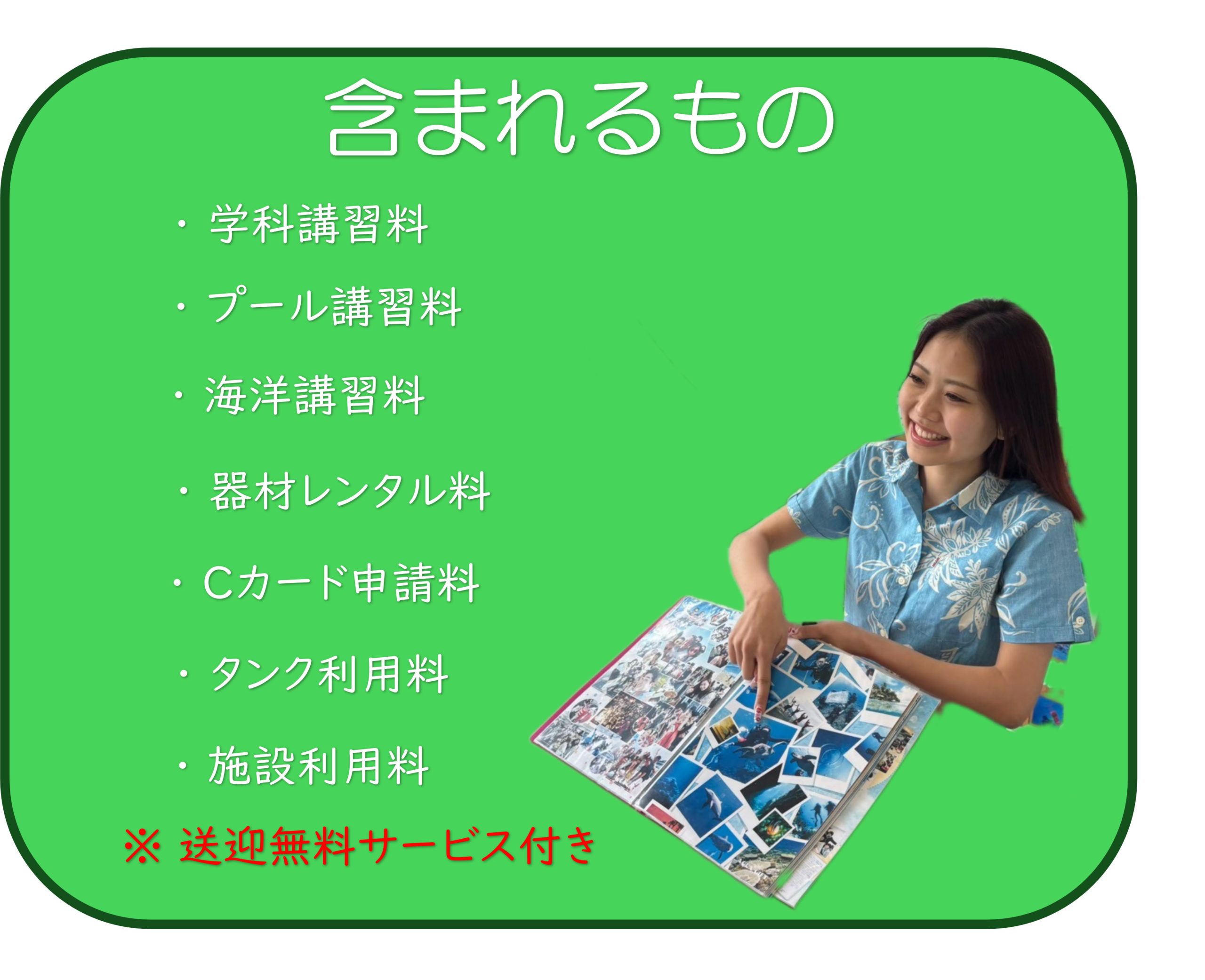 当店では海までの移動手段がない方にもうれしい無料送迎サービス付きでのダイビングを開催しています♪